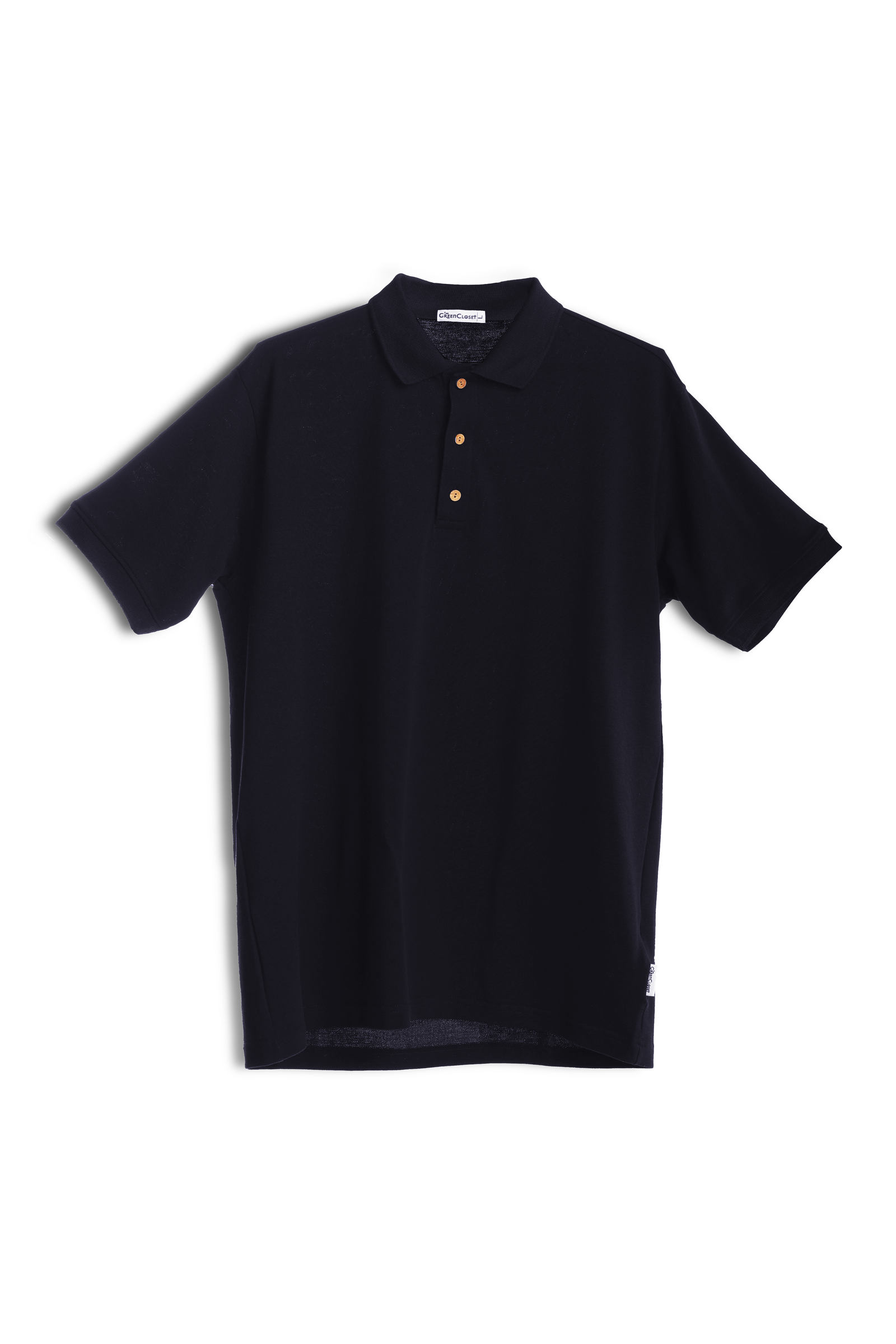 Introducing your new essential: the Sustainable Modern Black Polo Tee. Designed for the contemporary wardrobe, this polo boasts a sleek, integrated self-fabric collar that lays flat for a refined silhouette with a three-button placket adorned with unique wooden buttons, adding a touch of natural elegance. Its soft, breathable fabric ensures all-day comfort, while the half sleeves offer unrestricted movement. The versatile black shade makes it incredibly easy to style, transitioning seamlessly from a business-casual meeting to an evening out.